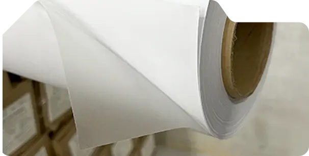 – Liner: Papel PEK branco de 140 g/m² com revestimento de silicone e PE de um lado.